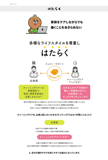 その保護者の「はたらく」をサポートする「チャーミングケアアンバサダー」に関しても、弊社ポータルサイトページを一部リニューアルいたしました。