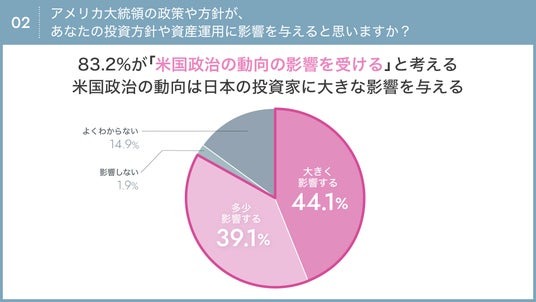 米国政治の動向が日本の個人投資家にも大きな影響を与えており、回答者の83.2%がアメリカ大統領の政策や方針が「自分の投資方針に影響を与える」と回答しました。