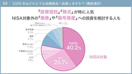 - 2025年の主要投資商品は「投資信託」と「株式」、幅広い選択肢が支持を集める