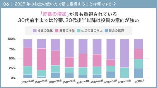 ライフステージや経済状況が変化する中で、お金の使い方に対する価値観も変化することが分かりました。若年層が貯蓄を優先する一方、30代以降は資産形成を目指して投資を考える傾向があるため、年代別の金融教育のアプローチが求められます。