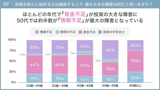 しかしながら、50代では約半数が「情報不足」を主要の障害としており、世代間で投資課題が異なることが確認されました。