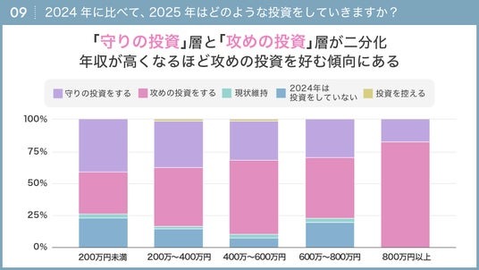 2024年(昨年)に比べて、2025年は「守りの投資」と「攻めの投資」を志向する層で二極化していることが判明しました。