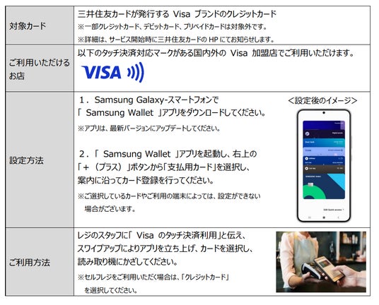 この機会にお持ちの三井住友カードの Visa カードを Samsung Wallet に設定いただき、便利でお得なキャッシュレスライフをお楽しみください。