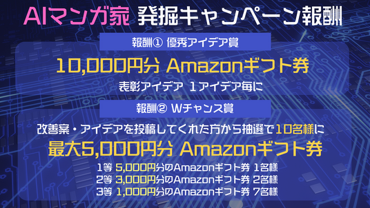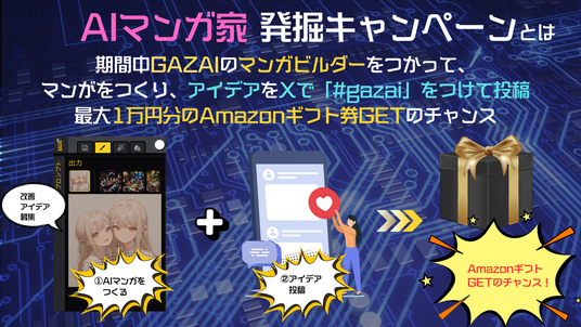 株式会社GAZAI(本社:東京都渋谷区、代表取締役:一岡亮大、以下「当社」)は、生成AIプラットフォーム「GAZAI」(https://www.gazai.ai/ja-JP)にて、1月23日(木)10時~2月4日(火)23時59分迄、AIマンガ家発掘キャンペーンを実施致します。