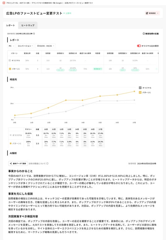 今回のアップデートではその中でも人気のABテスト機能のレポートを更に改善したものとなります。