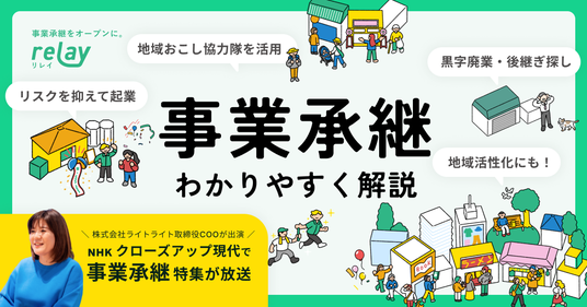 relayはこれまで社名や企業情報が伏せられてきた事業承継のマッチングをオープンネーム(実名開示)で行い、「オープンな事業承継」という新しい視点での事業承継支援を提案し、これまで取り残されていた地域の小規模事業者の廃業問題に真正面から向き合います。