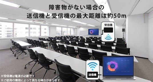 最大50mのワイヤレス伝送:広い会場でも安定した接続