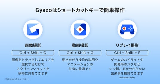 Gyazoはショートカットキーで簡単操作(画像撮影、動画撮影、リプレイ撮影)