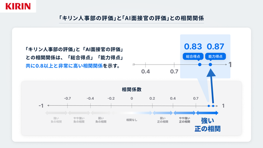 これにより、AI面接官がキリンの選考基準に沿った形で、公平で一貫性のある候補者の評価を支援できることが示されています。