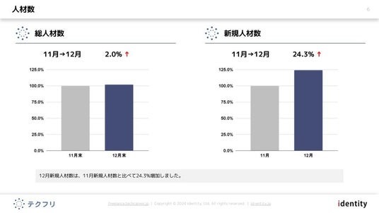 12月新規人材数は、11月新規人材数と比べて24.3%増加しました。