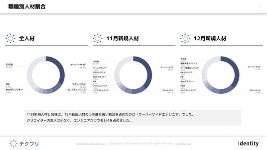 11月新規人材と同様に、12月新規人材のうち最も高い割合を占めたのは「サーバーサイドエンジニア」でした。