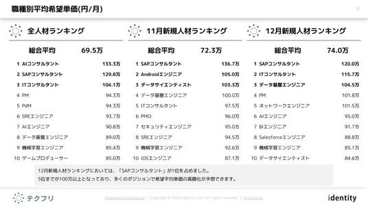 5位までが100万以上となっており、多くのポジションで希望平均単価の高額化が予想できます。