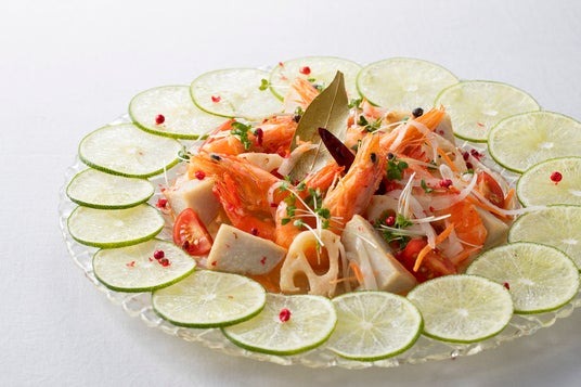 ソフトシェルシュリンプとレンコンと里芋のエスカベッシュ