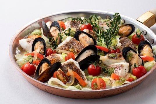 赤魚の炙り 春キャベツとムール貝のスープ仕立て