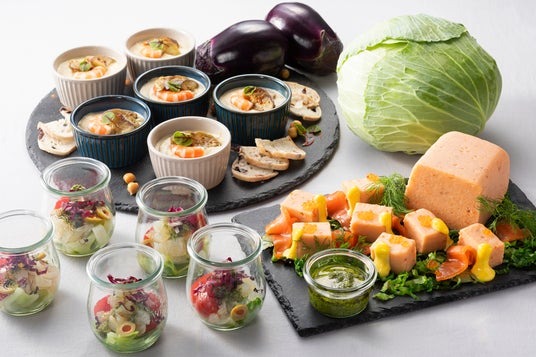 さらに海の幸に加えて、冬野菜を代表する地元の食材「松波キャベツ」を使用したメニュー2品と、泉州地域産として全国的に知名度が高い「水ナス」を使ったメニュー1品も本フェアに登場します。2月は、通常は捨てられることが多いキャベツの外葉をジェノベーゼソースに仕立てた「酒粕入りスモークサーモンとジャガイモのフォンダン 松波キャベツのジェノベーゼ風ソース」のほか、中華食材として知られるクラゲを洋風にアレンジし、松波キャベツと旬の新玉ねぎのピクルスを添えた「クラゲのオリーブマリネ 松波キャベツのピクルスを添えて」をご用意します。
