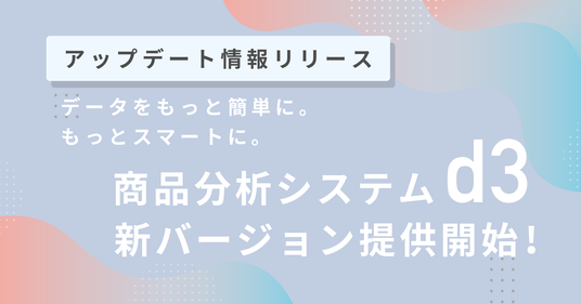 小売業界に特化した商品・顧客分析ソリューションを始めとする、パッケージシステムを開発・提供しているデータコム株式会社(本社:宮城県仙台市、代表取締役:小野寺修一)は、商品分析システム「d3」をアップデートしたことをお知らせします。