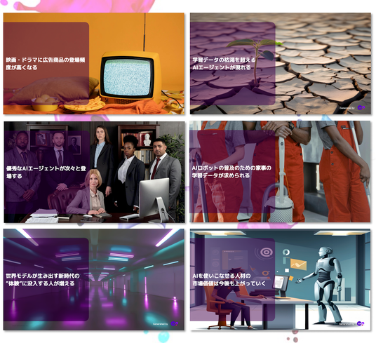 AIの進化は、生活、社会、ビジネス、テクノロジーに対し、予想を超えた大きな変化をもたらしています。この変化に対応するため、AIによる最新トレンドを整理し、定期的に情報を提供していきます。24年12月号では以下の6つのトピックを発表しました。