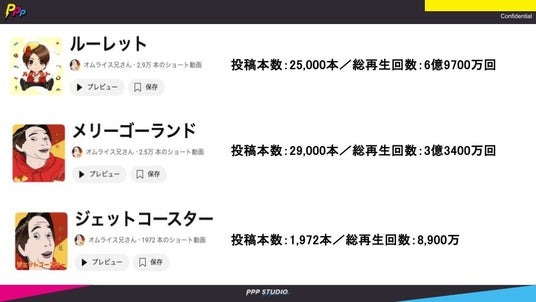 また、PPP STUDIOでは、クリエイターの方向けにYouTube Shortsの音源収益施策やファミマプリント、LINE VOOM等の収益化サポートも行っております。