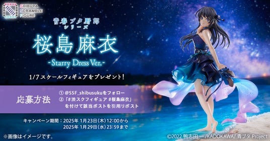 株式会社CyberZ(本社:東京都渋谷区、代表取締役社長:山内隆裕)が手掛けるフィギュアブランド「SHIBUYA SCRAMBLE FIGURE」(通称「渋スクフィギュア」)は、アニメ『青春ブタ野郎』シリーズより、「桜島麻衣 -Starry Dress Ver.-」の予約受付を開始いたします。本日2025年1月23日(木)12:00よりSHIBUYA SCRAMBLE FIGURE公式ストアにてご予約いただけます。