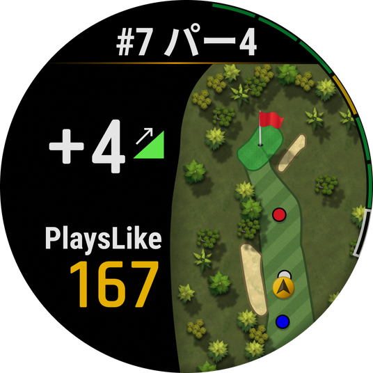 ■PlaysLike距離(打つべき推奨距離)※1コースの高低差を考慮して、打つべき推奨距離を表示。状況に応じたクラブ選択の判断をサポートします。
