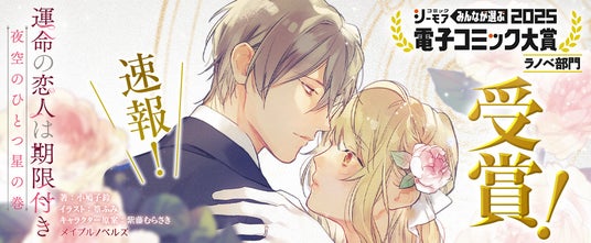 マイクロマガジン社(東京都中央区)の恋愛ノベル電子レーベル「メイプルノベルズ」より刊行中の『運命の恋人は期限付き 夜空のひとつ星の巻』が、「コミックシーモア・みんなが選ぶ電子コミック大賞2025[ラノベ部門]」を受賞しました。
