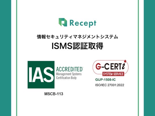 株式会社Receptは情報セキュリティマネジメントシステム(Information SecurityManagement System: 以下「ISMS」)の国際標準規格「ISO 27001」の認証を2025年1月16日付で取得いたしました。