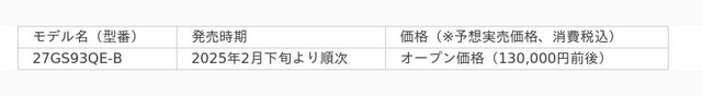 製品URL:https://www.lg.com/jp/monitors/gaming-monitors/27gs93qe-b/