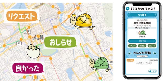 「『かめ丸』を育てて、まちのファンになる」バス停に関する新たな情報プラットフォーム