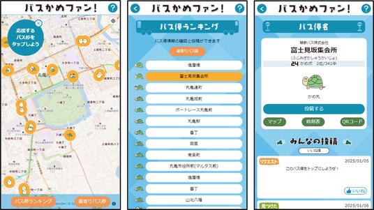 このたび、Pacific Spatial Solutions株式会社(東京都千代田区、代表取締役:八十島 裕、以下PSS)と株式会社三菱地所設計(東京都千代田区、代表取締役社長:谷澤 淳一、以下 三菱地所設計)は、香川県丸亀市におけるコミュニティバスやデマンド型交通※1の利用促進や周辺地域の活性化を目指し、バス停SNSウェブアプリ《バスかめファン!》の試験運用を開始したことをお知らせいたします。