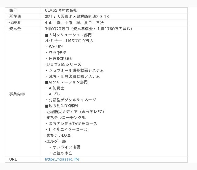 CLASSIX株式会社は、笑いを通してコミュニケーションの活性化を図り人財育成と地域創生DXを推進する企業です。「笑い」で人々のエンゲージメントの向上と社会の安寧を支える活動を展開いたします。