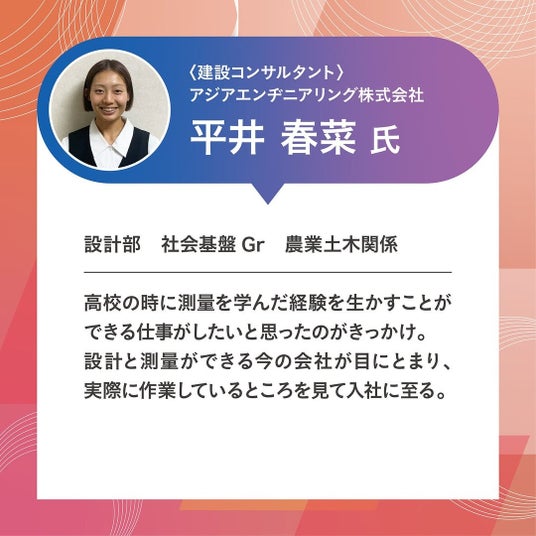 アジアエンヂニアリング株式会社 平井 春奈 氏(建設コンサルタント)