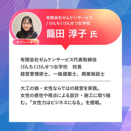 モデレーター:有限会社ゼムケンサービス/けんちくけんせつ女学校 籠田 淳子 氏