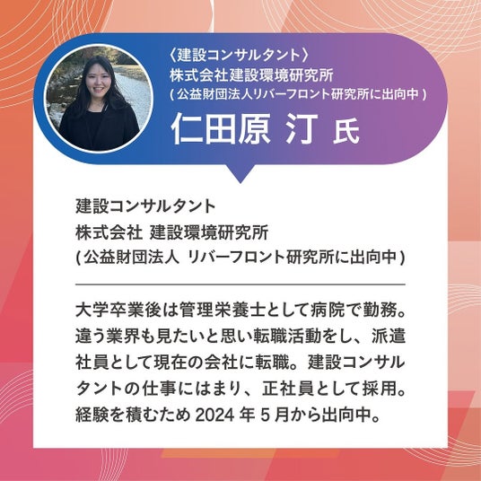株式会社建築環境研究所(公益財団法人リバーフロント研究所に出向中)仁田原 汀 氏(建設コンサルタント)