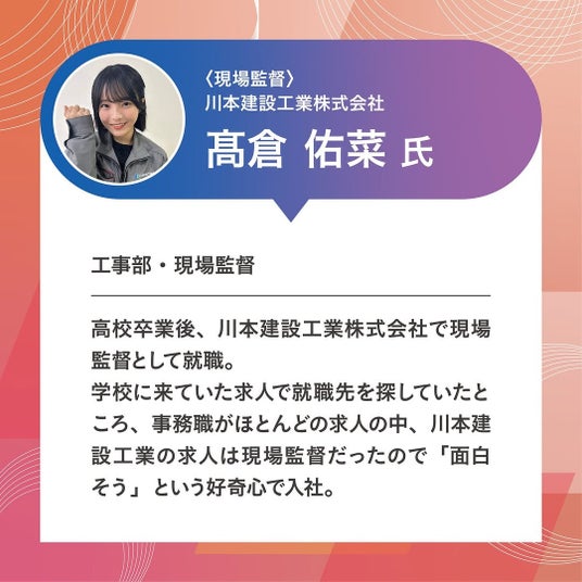 川本建設工業株式会社 高倉 佑菜 氏(現場監督)