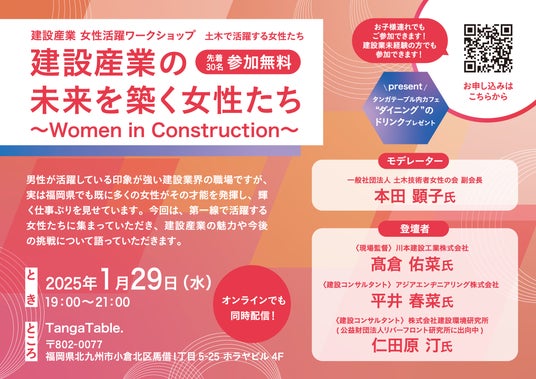 男性が活躍している印象が強い建設業界の職場ですが、実は福岡県でも既に多くの女性がその才能を発揮し、輝く仕事ぶりを見せています。第一線で活躍する女性たちをゲストに招き、建設産業の魅力や今後の挑戦について伺います。現地参加はもちろん、オンラインでの視聴も可能です。
