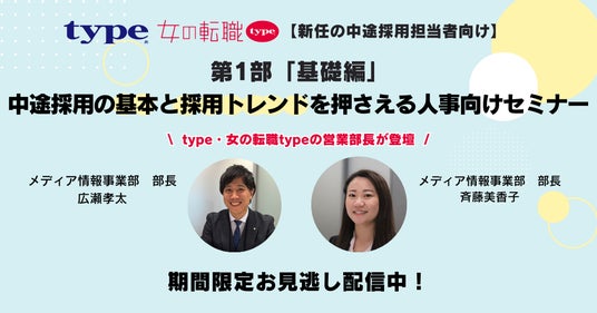 【新任の中途採用担当者様向け】中途採用の基本と採用トレンドを押さえる人事向けセミナーhttps://info.type.jp/webinar-guide/archive/entry/0048/