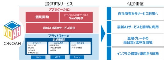 伊藤忠テクノソリューションズ株式会社(代表取締役社長:新宮 達史、本社:東京都港区、略称:CTC)は、金融機関向けの業務アプリケーションとシステム基盤をサービスとして利用できる「C-NOAH(シー・ノア)」の提供を開始します。与信管理や融資支援などのアプリケーションと金融業界のセキュリティ基準に準拠するためのシステム基盤をSaaS形式で提供します。アプリケーション開発やインフラ構築にかかる初期費用を抑えて、業務効率化や高度化を支援します。3年間で30億円の売上を目指します。