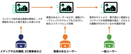 近年、生成AI技術の進化により、ネット上のコンテンツの信頼性が損なわれる事例が増加しています。ニュースや公式発表が改ざんされることで、社会的混乱や偽情報の拡散が深刻な問題となっています。当技術は、さまざまな分野で信頼性と透明性の向上に寄与するために提供されます。