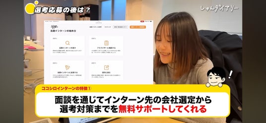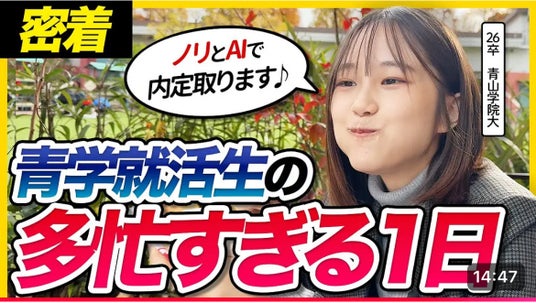 今回の動画では、青山学院大学の26卒就活生の1日に密着し、就職活動に役立つツールとして「SmartES」と「ココシロインターン」が紹介されました。