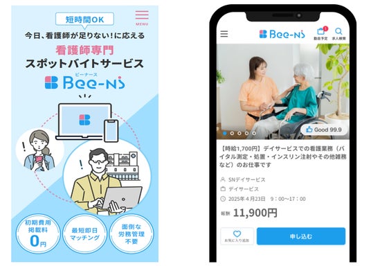 看護師専門スポットバイトサービス「Bee-Ns(ビーナース)」