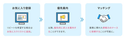 再度勤務していただきたい看護師をお気に入り登録することで優先的に求人の案内が可能となります。