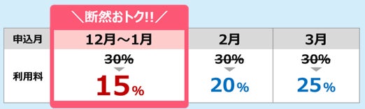 Bee-Nsに早期お申込みいただいた事業所様に対して、申込月に応じて適用期間内に発生したサービス利用料を割引いたします。