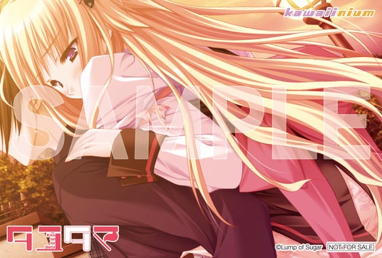 本家Lump of Sugarで実施されたキャラクター人気投票によって上位に選ばれた「ましろ・アメリ・鵺」と人気娘の3人がそれぞれ特別に描き下ろされ、萌木原ふみたけ氏のサインも記載されています。こちらは3枚がセットになっているのでぜひ並べてお楽しみください。