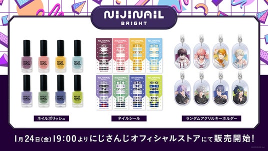 「にじネイル Bright」グッズは、にじさんじオフィシャルストア(https://shop.nijisanji.jp)にて2025年1月24日(金)19時から販売を開始いたします。