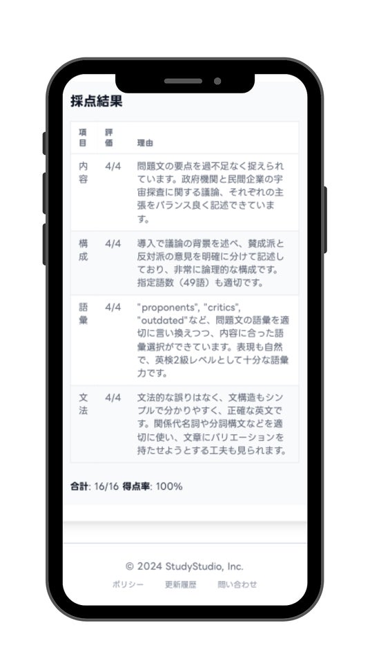 ・ 意見論述問題採点:https://apps.studystudio.jp/writing-review/essay-review