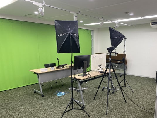 ◇スタジオ(グリーンバッグ付き)ビジネス研修の撮影や映像制作に適したスタジオ。