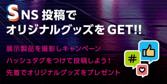 ■会場内SNSキャンペーン展示製品を撮影しキャンペーンハッシュタグをつけて投稿するとその場でオリジナルグッズがもらえるSNS企画も実施いたします。