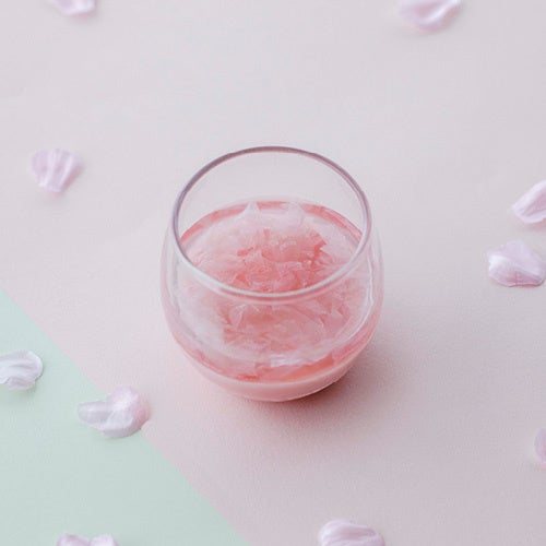 ジュレ:桜の花びらから作られた透明感あふれるジュレと苺ムースが華やかに織りなすスペシャルスイーツの「ジュレ」。春の情景が目の前に広がるような美しい一皿です。