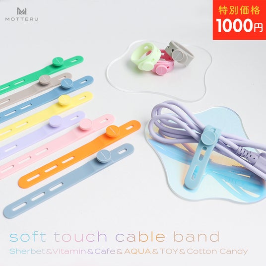 sofumo ソフトタッチ ケーブルバンド(MOT-CBBAND05)細いケーブルから太いケーブルまでしっかりと固定できるケーブルバンドです。従来のパッケージの素材からプラスチック使用量を削減し、紙素材のシンプルなパッケージを採用しました。