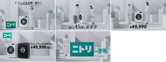 ニトリ家電新CM「スリムドラム式洗濯機」篇(15秒):https://www.youtube.com/watch?v=qcTJjN1JKqs